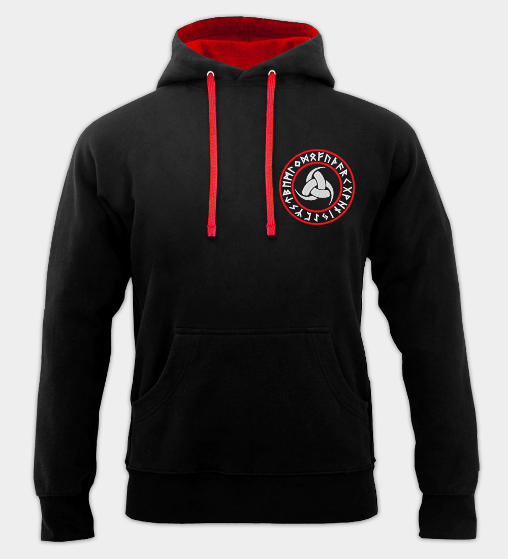 Odins trefoldige horn broderet hættetrøje